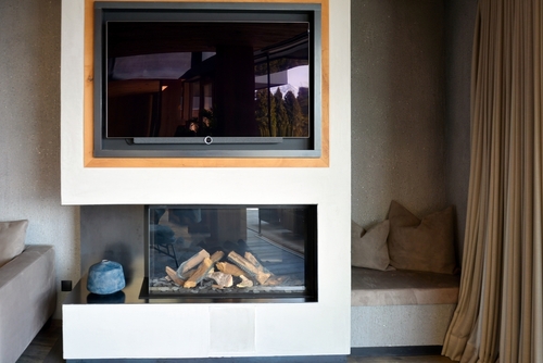 1. The Oversized TV Over the Fireplace An extra-large TV mounted over a fireplace instantly becomes the focal point of