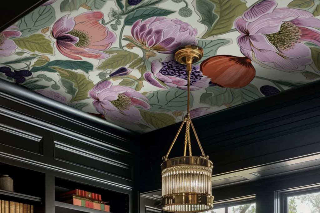 Painting or wallpapering ceilings in bold colors can initially wow guests, but it rarely has long-term appeal. Ceilings are tough to maintain, and dark or complex patterns can make a room feel smaller or oppressive. Dust and cobwebs are more noticeable against darker surfaces. Over time, the dramatic look can feel overwhelming rather than stylish.