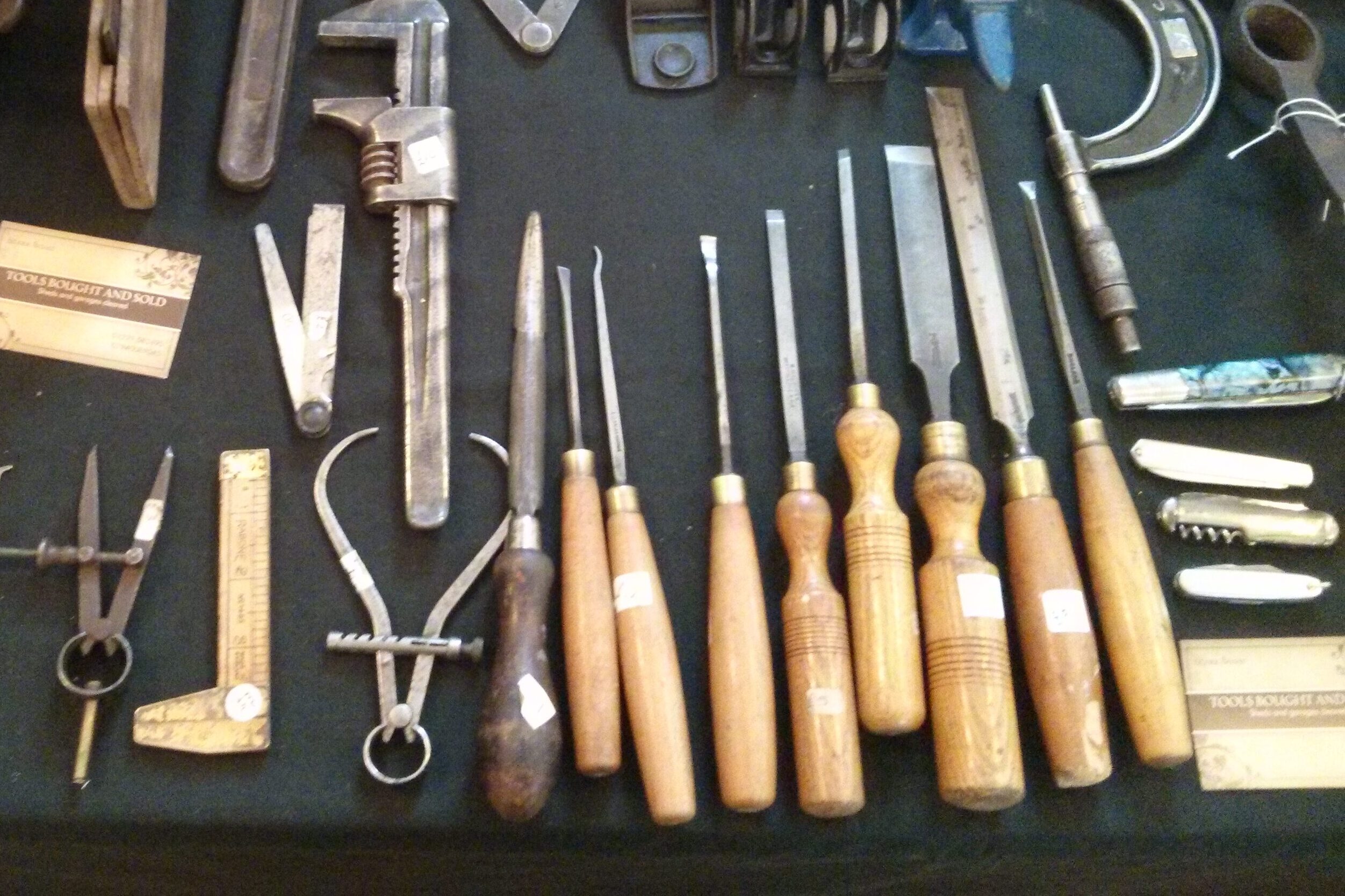 Old hand tools often retain more value when their original surfaces are intact. Worn handles and dulled finishes suggest real use rather than restoration. Collectors appreciate original japanning or paint, even when chipped. Heavy refinishing can make tools look generic.
